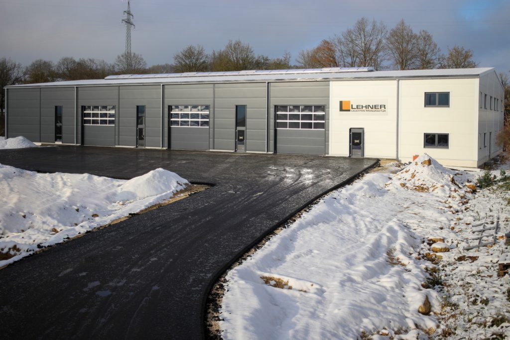 Lehner Leuchten Manufaktur stellt auch beim Neubau der Produktionshalle ihre Performance und Leistungsfähigkeit unter Beweis.