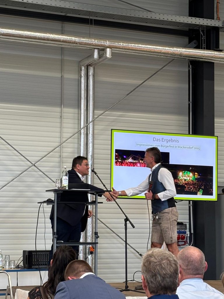 Mit spannenden Vorträgen namhafter Hersteller aus ganz Deutschland, starken Partnern wie dem Bayernwerk und viel Raum für Austausch entwickelte sich der Tag zu einer echten Plattform für Innovation. Besonders im Fokus standen unsere aktuellen Leuchtturmprojekte – unter anderem die smarte Straßenbeleuchtung in Wackersdorf sowie die neue Biosphärenbeleuchtung am Radweg in Pösing, für die an diesem Tag offiziell der Auftrag erteilt wurde.